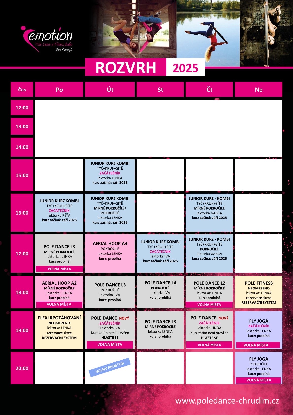 ROZVRH LEKCÍ, KTERÉ PROBÍHAJÍ V KURZU. PRO PŘIHLÁŠENÍ DO KURZU NÁS KONTAKTUJTE.